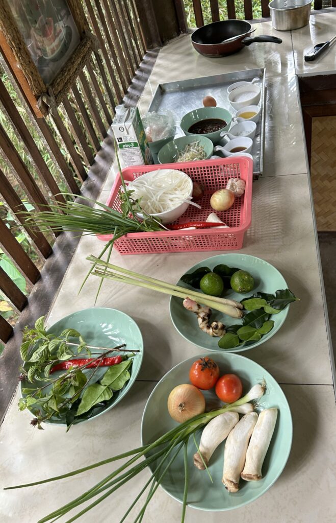La mattina inizia con calma, il tempo è ancora incerto ma approfittiamo delle ultime ore nel verde per esplorare un po’ i dintorni di Khao Sok e partecipare a una cooking class. Impariamo a cucinare alcuni piatti tipici thailandesi – Tom Kha Gai, Pad Thai e Panang – e, ovviamente, a mangiarli con soddisfazione.