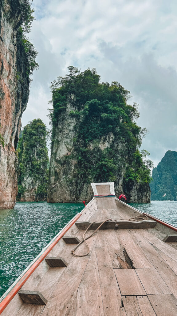 Il viaggio è poi proseguito nel cuore della natura incontaminata: abbiamo solcato le acque smeraldo del Parco Nazionale di Khao Sok tra scogliere calcaree e giungla fitta, dormendo in un lodge immerso nella foresta.