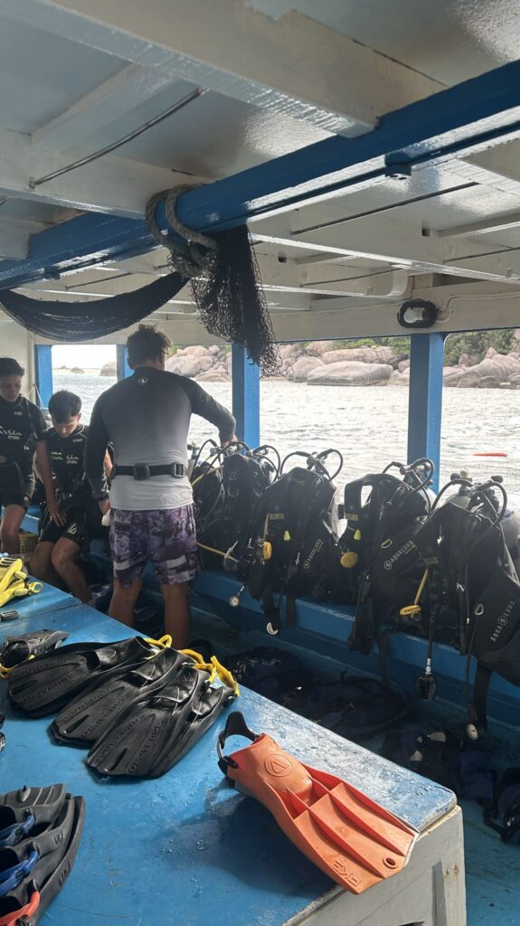 Oggi è il grande giorno delle immersioni! Koh Tao è considerata uno dei posti migliori, e più accessibili, al mondo per iniziare a immergersi, e noi non potevamo lasciarci sfuggire l’occasione. Prima ancora di arrivare in Thailandia ci siamo informati sull’offerta di diving dell’isola, e considerando il tempo a disposizione abbiamo optato per il “battesimo subacqueo”.